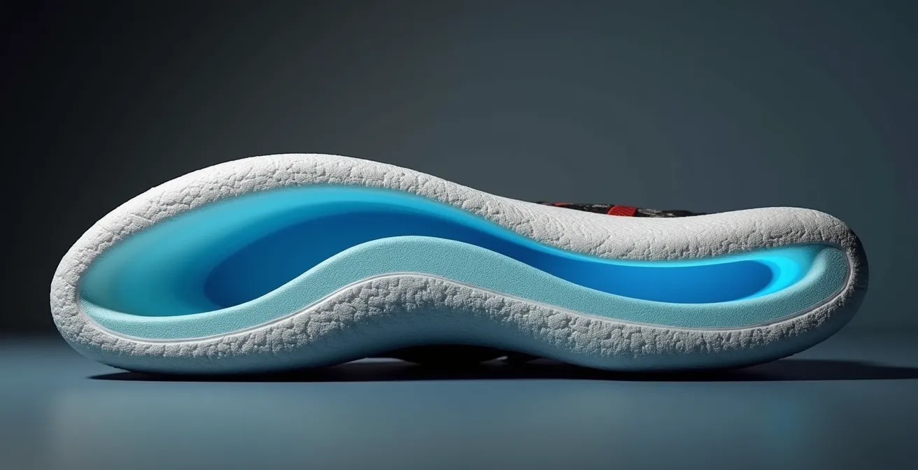 Les technologies modernes comme le TPU (polyuréthane thermoplastique) et le PEBA (polyéther bloc amide) représentent une avancée majeure. Le TPU, popularisé sous le nom de « Boost », est extrêmement résilient : il se comprime pour absorber le choc puis reprend sa forme quasi-instantanément, offrant un excellent retour d’énergie. Le PEBA, encore plus léger et réactif, est aujourd’hui la référence sur les modèles de compétition, car il combine amorti maximal et dynamisme. D’un point de vue médical, une mousse qui conserve ses propriétés sur la durée est un gage de protection constante pour vos genoux, évitant l’usure prématurée de votre « système de suspension ».
