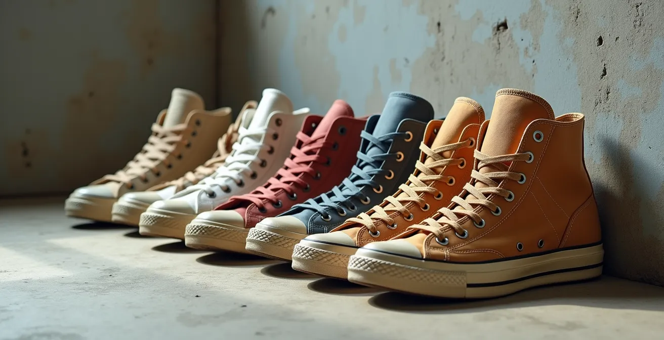 Contrairement à l’idée reçue, reconnaître une hightop vintage authentique ne se résume pas à vérifier un logo ou la boîte d’origine. La clé est de maîtriser une véritable archéologie matérielle : comprendre pourquoi une semelle de 1985 était lourde, comment le cuir était traité et quelle philosophie de fabrication dictait sa forme. Cet article vous apprend à lire ces marqueurs d’époque pour déceler les anachronismes subtils qui trahissent les imitations et les rééditions infidèles.